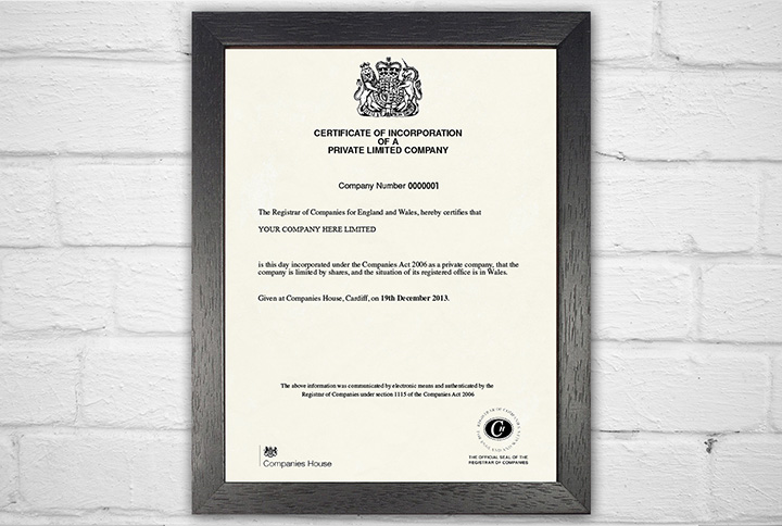 Official printed Certificate of incorporation – RRP £15